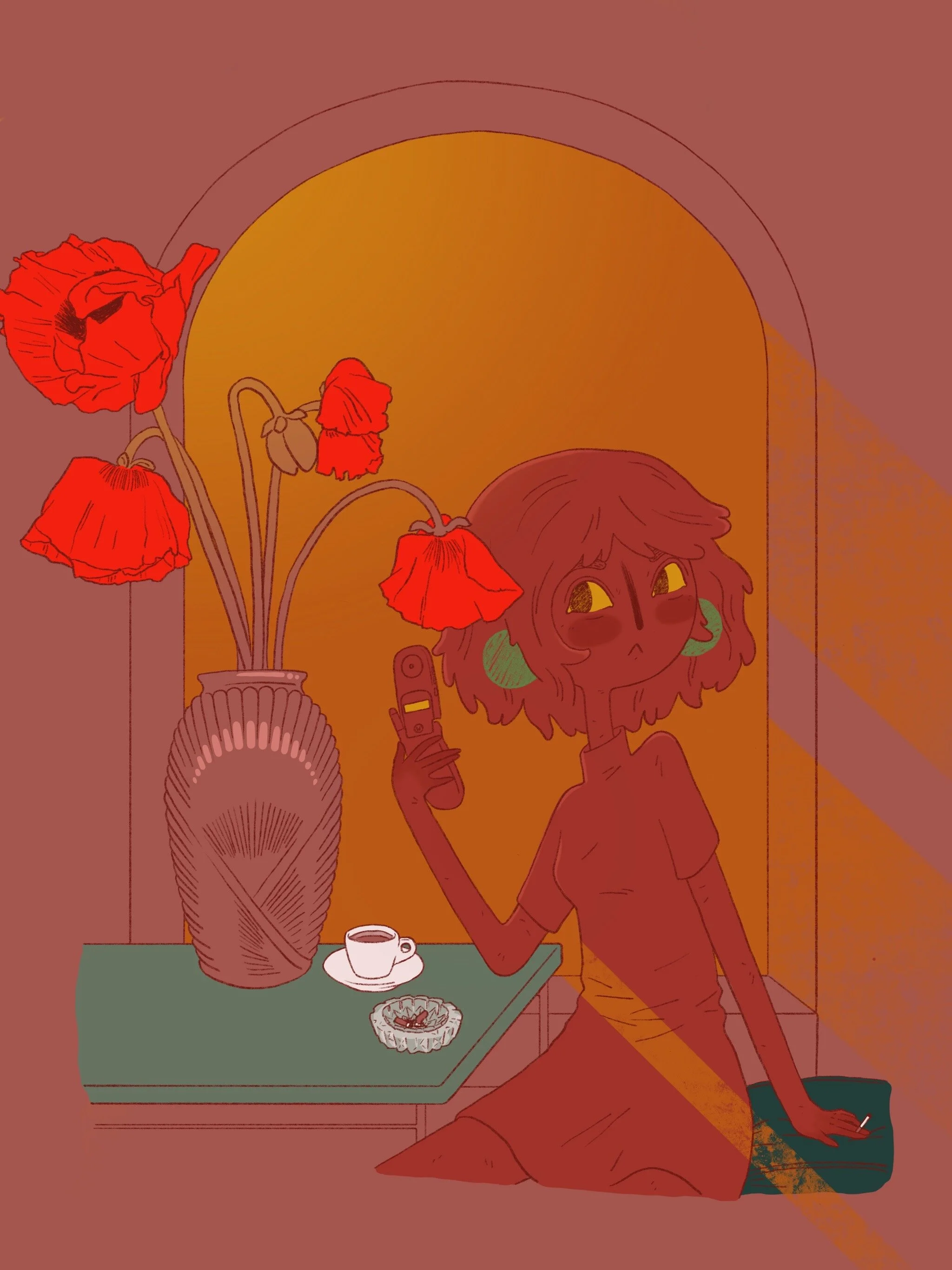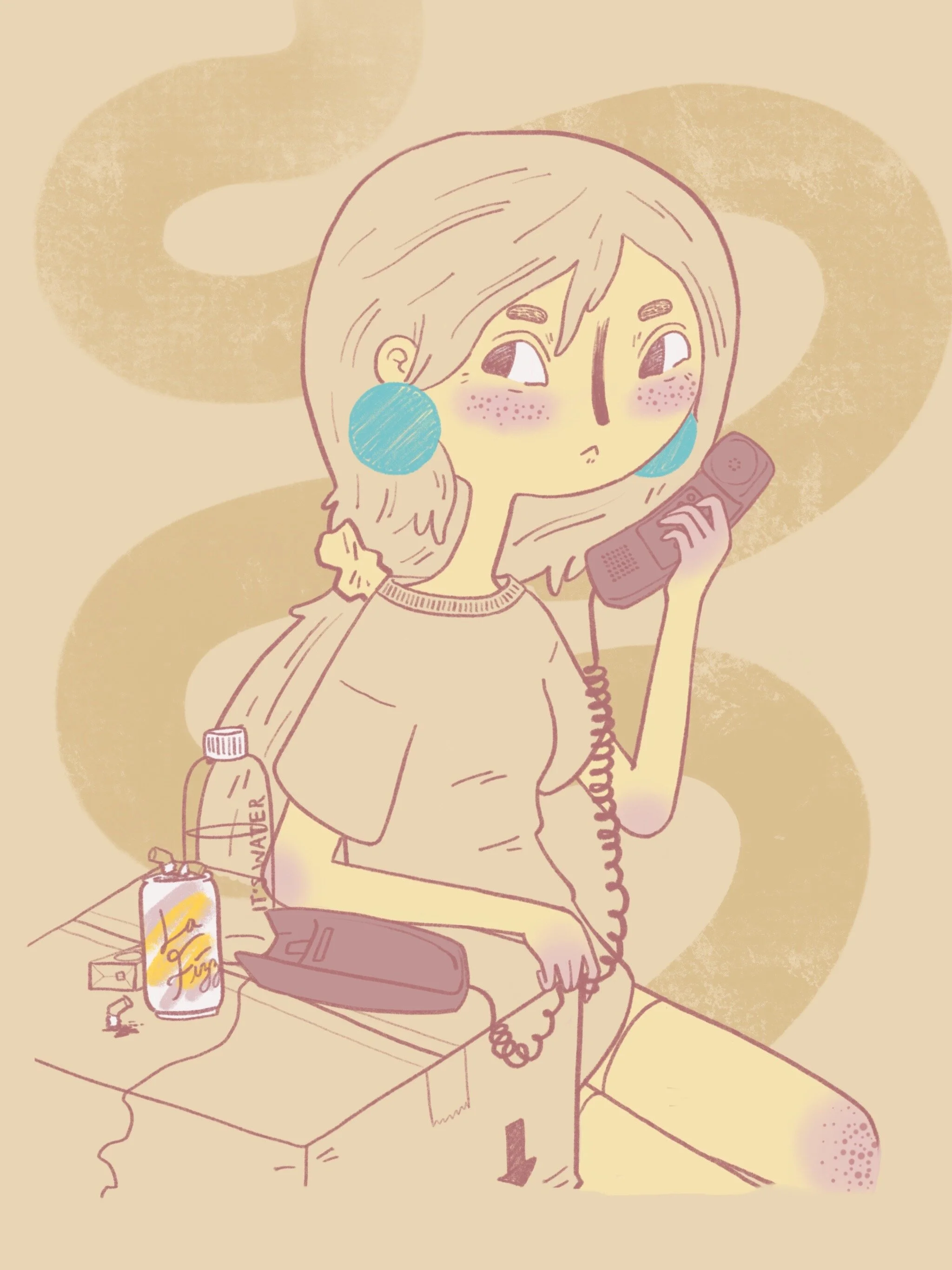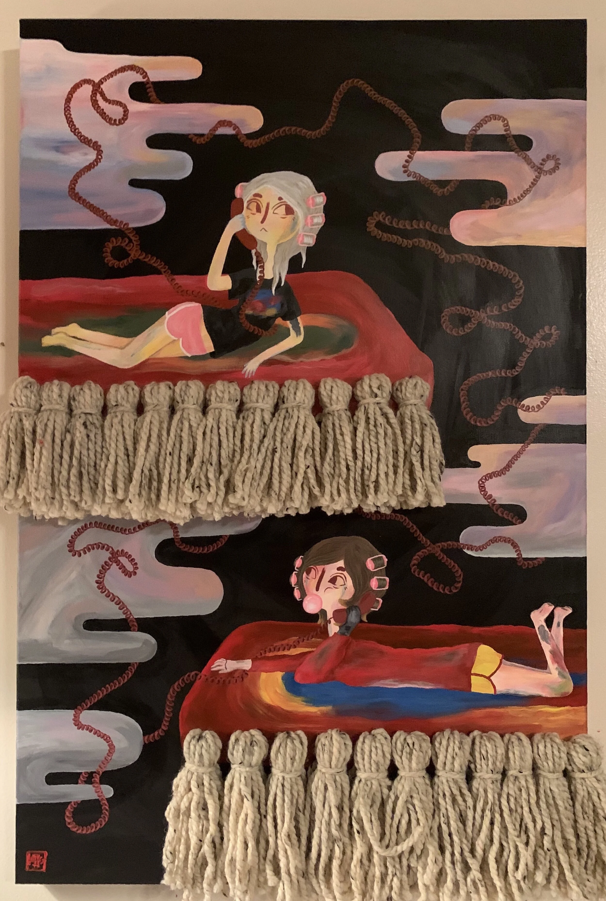 Long Distance Phone Call (2019) 24β³x36β³ Acrylic and textile on canvas