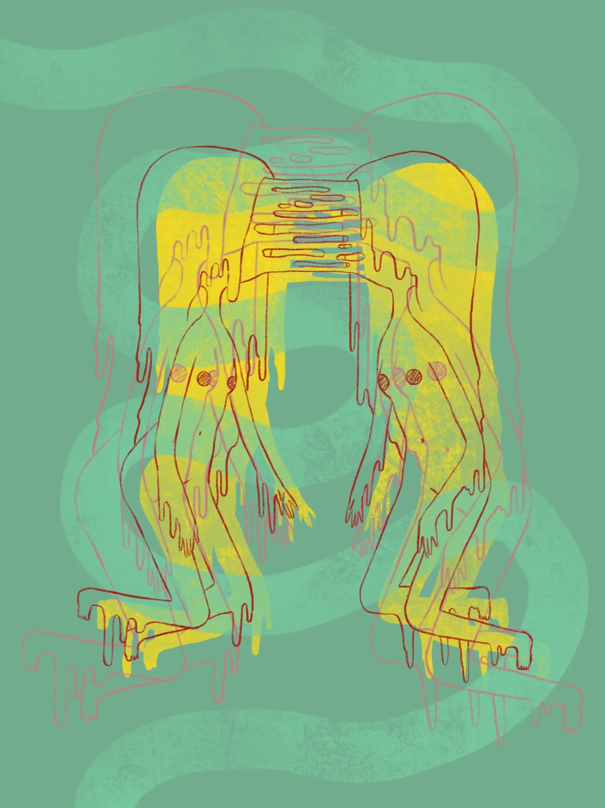 Bad Habit (2017) 16β³x24β³ Acrylic and textile on canvas